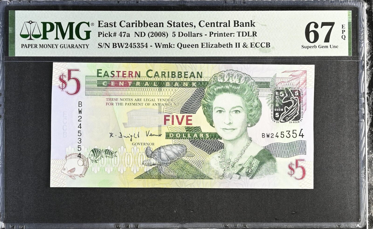 East Caribbean 5 Dollars ND 2008 P 47 a Superb Gem UNC PMG 67 EPQ