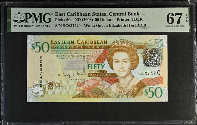 East Caribbean 50 Dollars ND 2008 P 50 a Superb Gem UNC PMG 67 EPQ