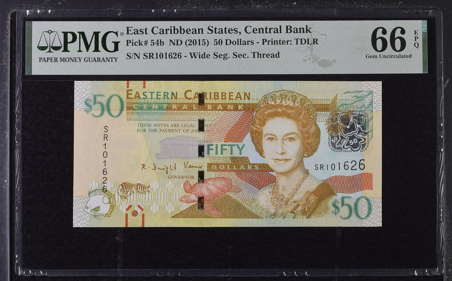 East Caribbean 50 Dollars ND 2015 P 54 b Gem UNC PMG 66 EPQ