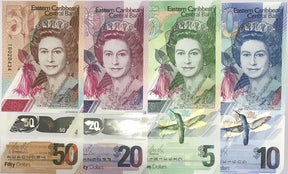 East Caribbean Set 4 Pcs 5 10 20 50 Dollars 2019-2021 P 56 57 58 59 Polymer UNC