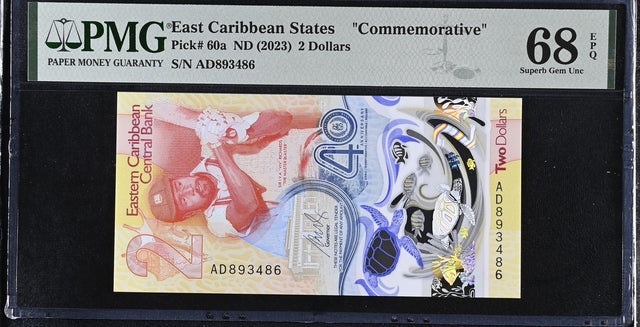 East Caribbean States 2 Dollars ND 2023 P 60 a Superb Gem UNC PMG 68 EPQ