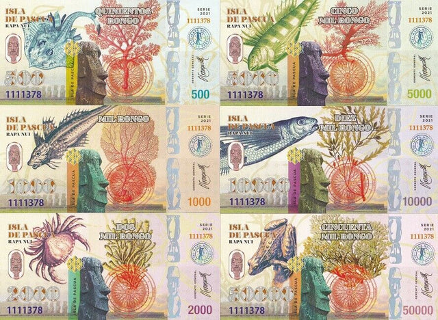 Easter Island Set 6 500 1000 2000 5000 10000 50000 Rongo 2021 polymer Fantasy