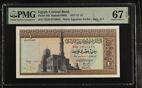 Egypt 1 Pound 1975 P 44 b Superb Gem UNC PMG 67 EPQ TOP POP
