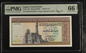 Egypt 1 Pound 1977 P 44 c Gem UNC PMG 66 EPQ