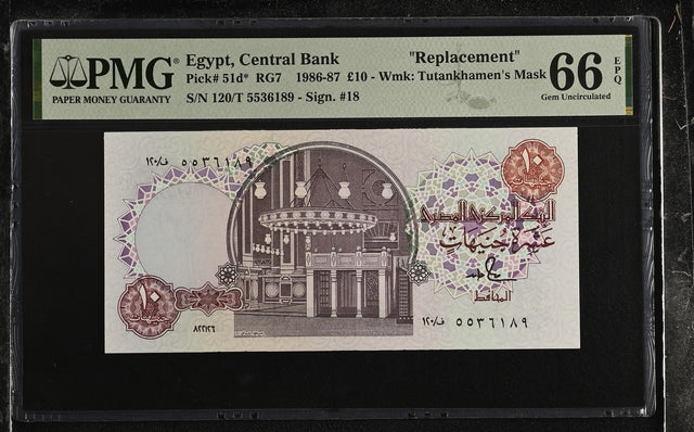 Egypt 10 Pounds 1986-1987 P 51 d* Replacement Gem UNC PMG 66 EPQ