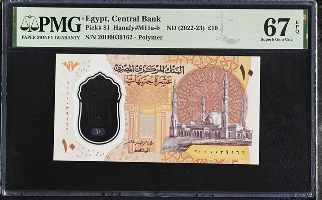 Egypt 10 Pounds ND 2022 Polymer P 81 Superb Gem UNC PMG 67 EPQ