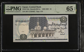 EGYPT 5 POUNDS 1989-2001 P 59 a Gem UNC PMG 65 EPQ