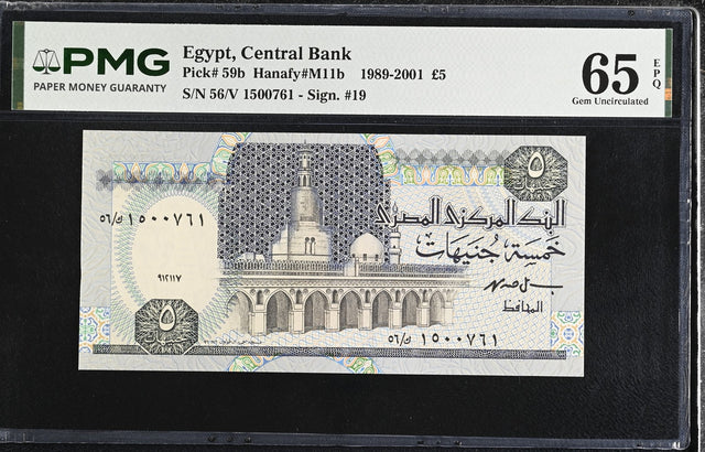 EGYPT 5 POUNDS 1989-2001 P 59 b Gem UNC PMG 65 EPQ
