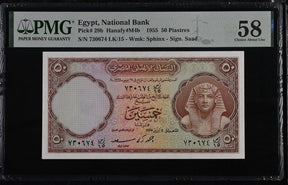 Egypt 50 Piastres 1955 P 29 b Choice About UNC PMG 58