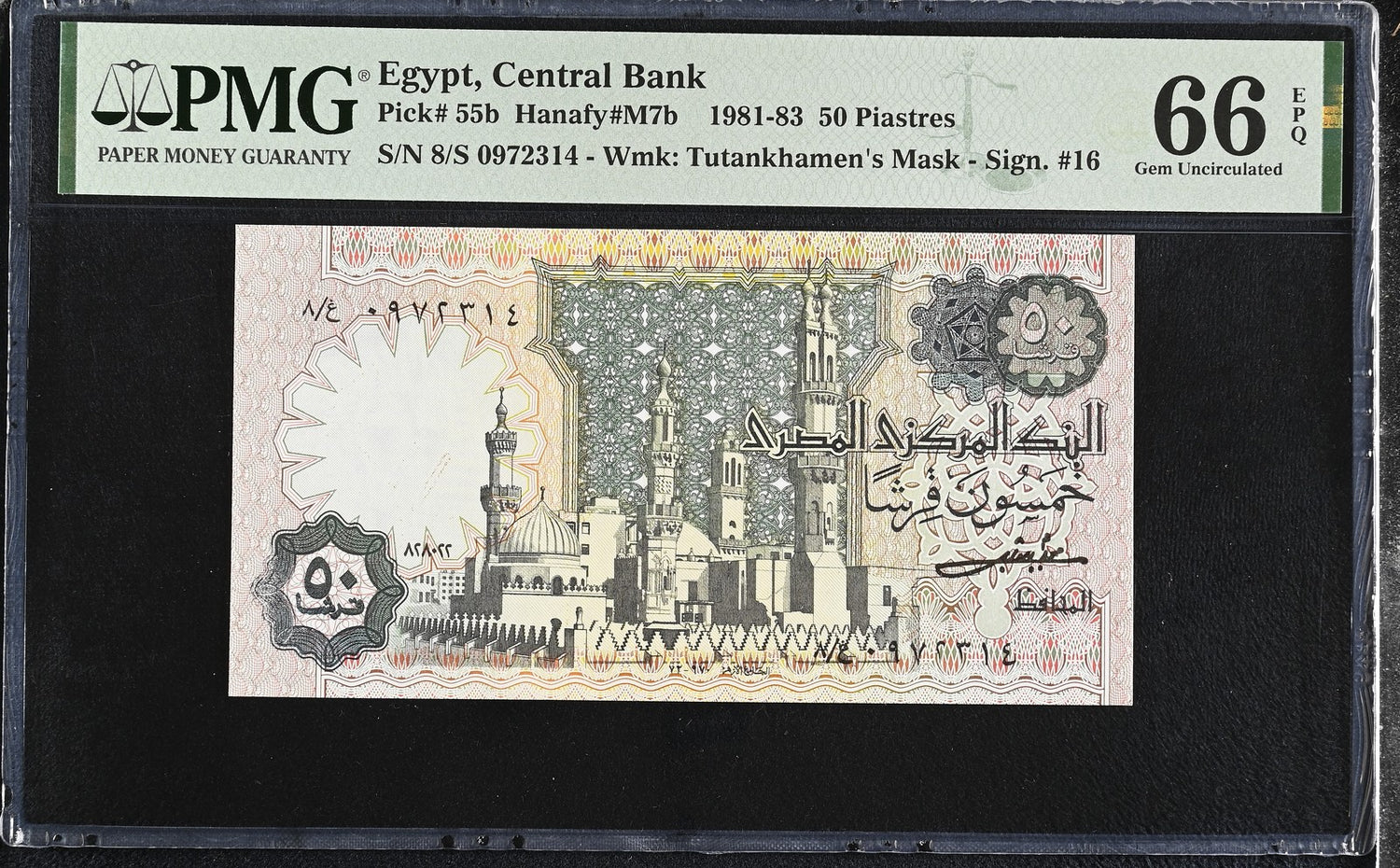 Egypt 50 Piastres 1981-1983 P 55 b Gem UNC PMG 66 EPQ