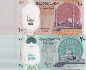 Egypt SET 2 UNC 10 20 P 2022-2023 Polymer Mixed Dates P 81 82 LOT 10 Sets 20 Pcs