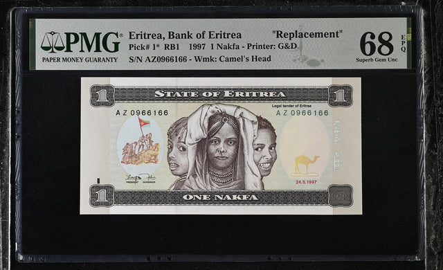 Eritrea 1 Nakfa 1997 P 1* REPLACEMENT Superb Gem UNC PMG 68 EPQ TOP POP