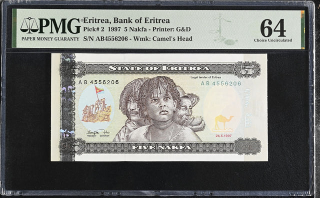 Eritrea 5 Nakfa 1997 P 2 Choice UNC PMG 64