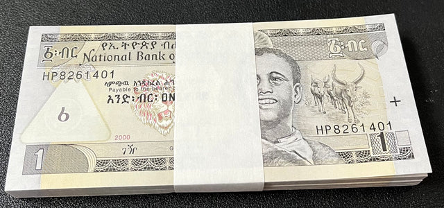 Ethiopia 1 Birr 2000/2008 P 46 e UNC LOT 100 PCS 1 BUNDLE