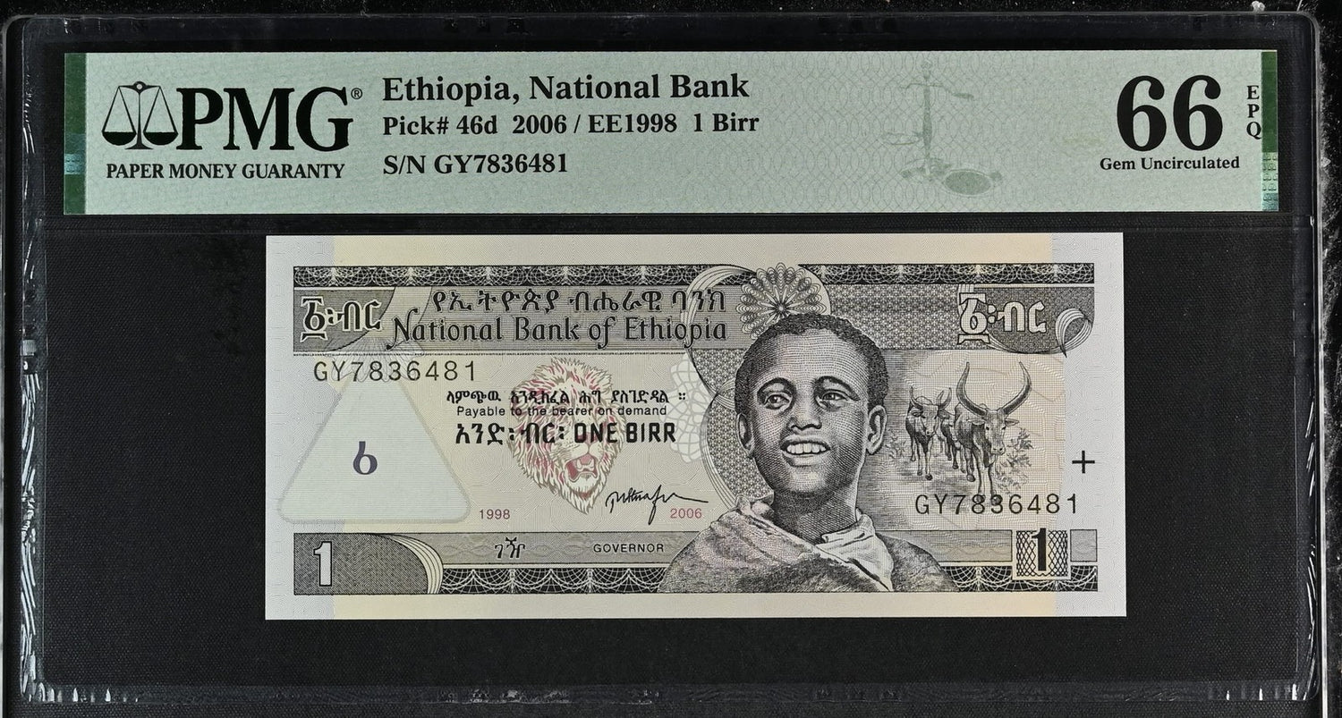 Ethiopia 1 Birr 2006 P 46 d Gem UNC PMG 66 EPQ
