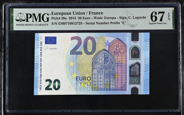 Euro 20 Euro France 2015 P 29 e Superb Gem UNC PMG 67 EPQ
