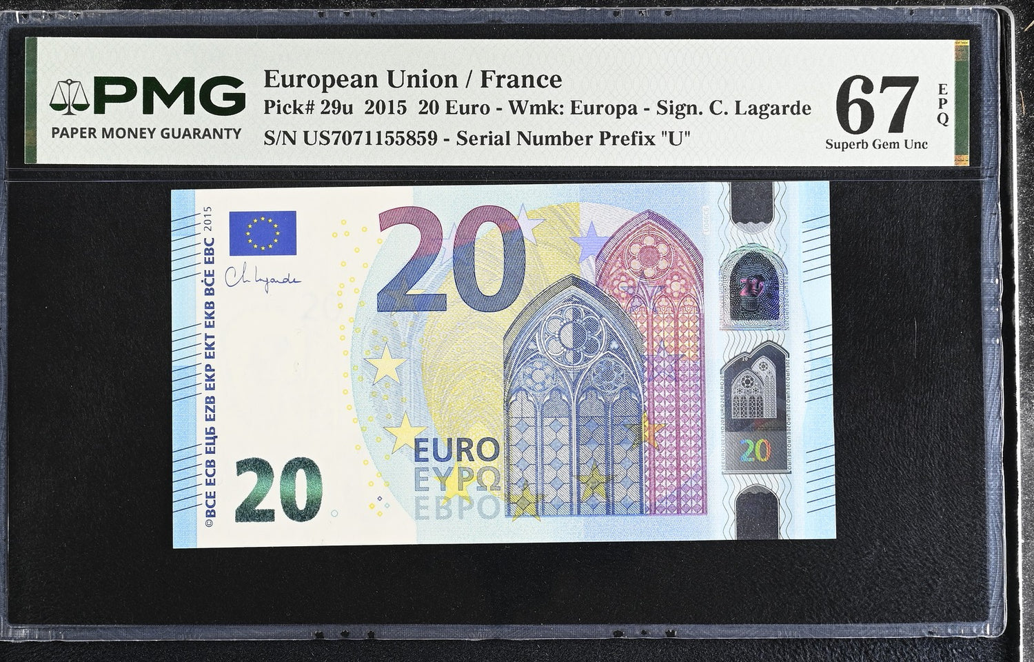 Euro 20 Euro France 2015 P 29 u Superb Gem UNC PMG 67 EPQ
