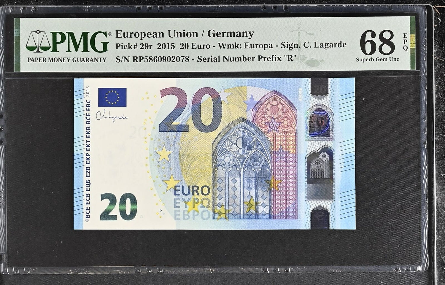 Euro 20 Euro Germany 2015 P 29 r Superb Gem UNC PMG 68 EPQ TOP POP