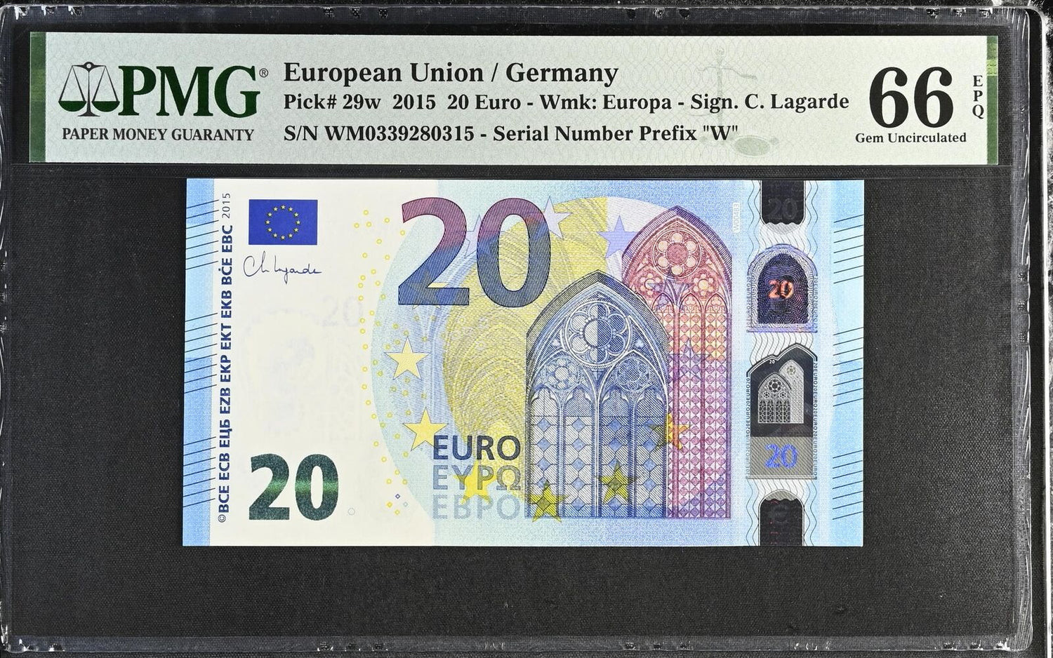 Euro 20 Euro Germany 2015 P 29 w Gem UNC PMG 66 EPQ