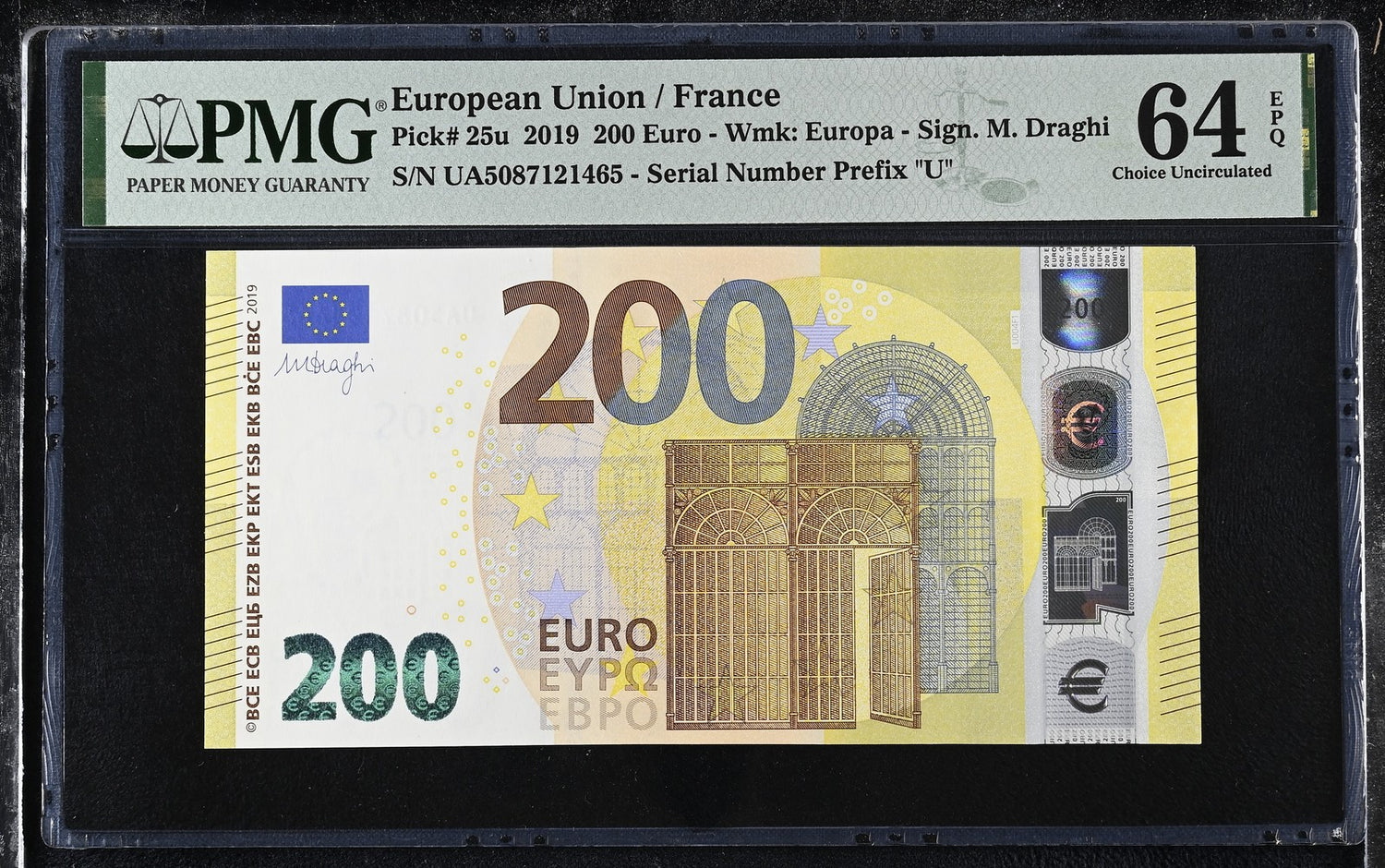 Euro 200 Euro France 2019 P 25 u Choice UNC PMG 64 EPQ