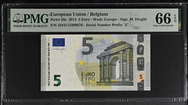 Euro 5 Euro 2013 Belgium P 20 z Gem UNC PMG 66 EPQ