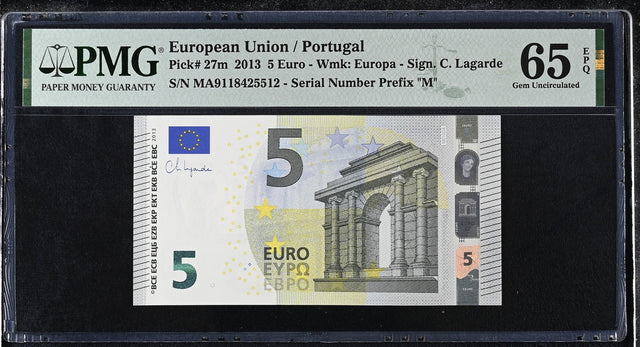 Euro 5 Euro Portugal 2013 P 27 m Gem UNC PMG 65 EPQ