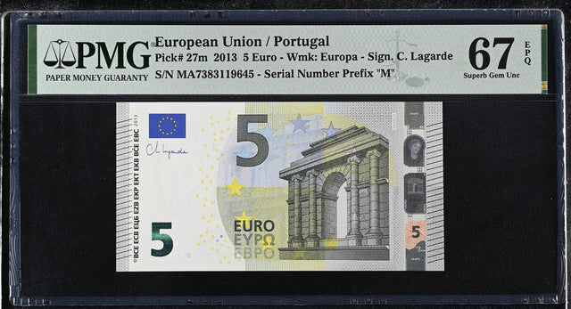 Euro 5 Euro Portugal 2013 P 27 m Superb Gem UNC PMG 67 EPQ