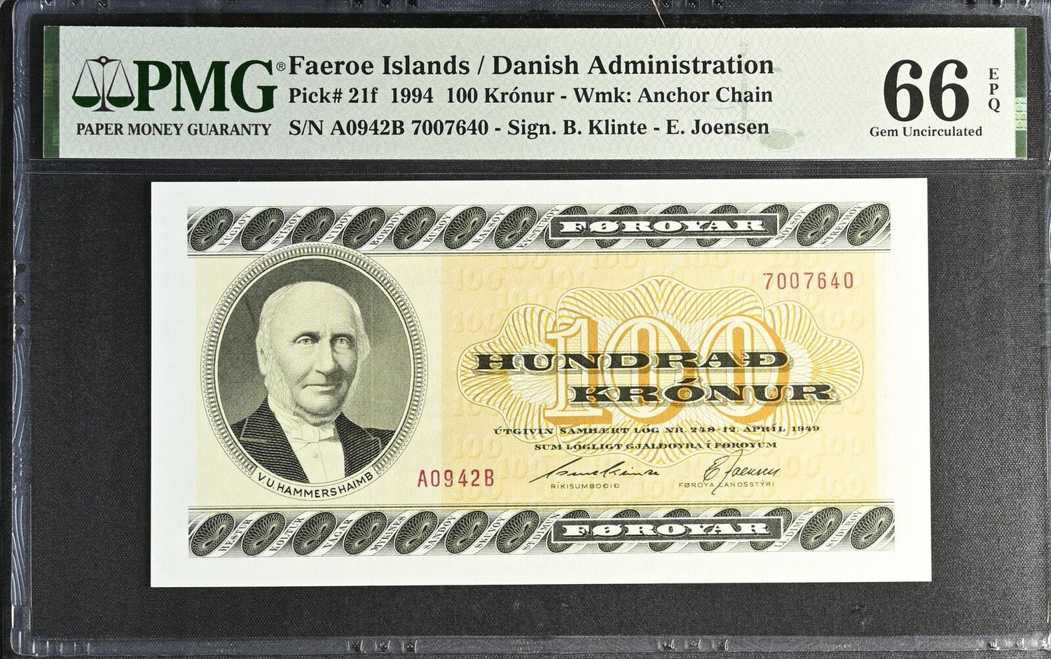 Faeroe Islands 100 Kronur 1994 P 21 f Gem UNC PMG 66 EPQ