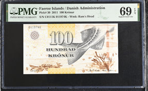 Faeroe Islands 100 Kronur 2011 P 30 Superb Gem UNC PMG 69 EPQ
