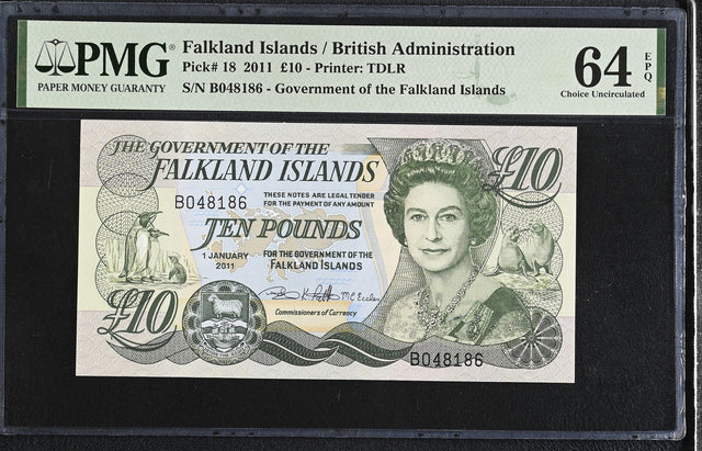 Falkland Islands 10 Pounds 2011 P 18 Choice UNC PMG 64 EPQ