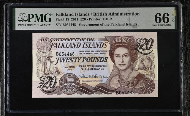 Falkland Islands 20 Pounds 2011 P 19 Gem UNC PMG 66 EPQ