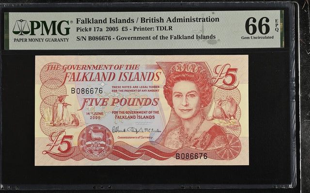 Falkland Islands 5 Pounds 2005 P 17 a Gem UNC PMG 66 EPQ