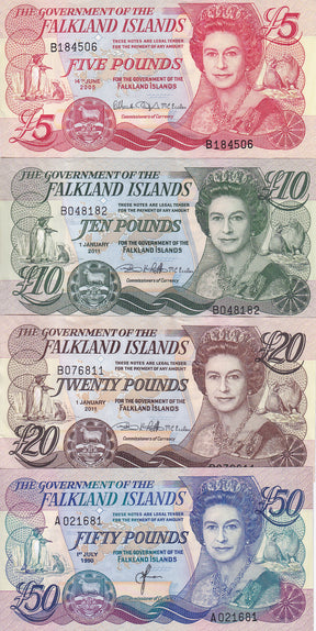 Falkland Islands Set 4 UNC 5 10 20 50 Pounds 1990 - 2011 P 16 17 18 19