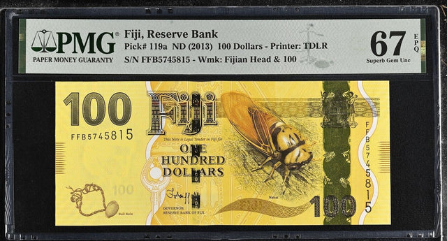 Fiji 100 Dollars ND 2013 P 119 a Superb Gem UNC PMG 67 EPQ