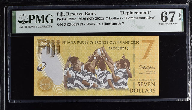 Fiji 7 Dollars 2020 / 2022 Comm. P 122 a* Replacement Superb Gem UNC PMG 67 EPQ