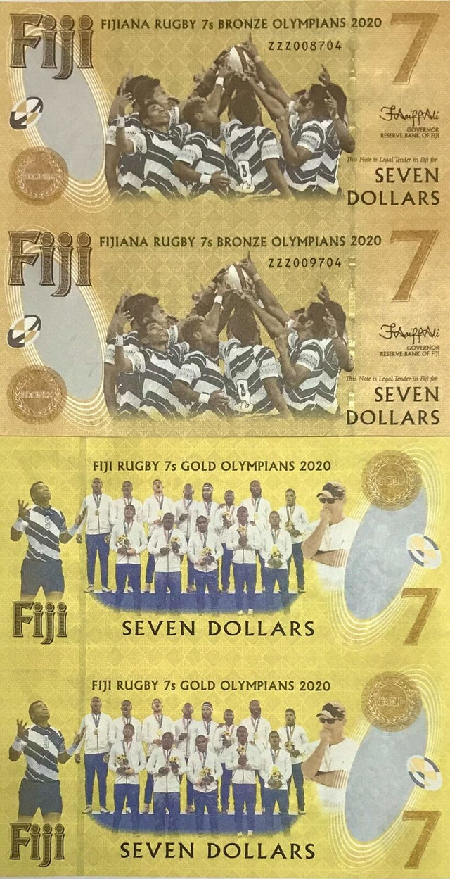 Fiji 7 Dollars 2020 / 2022 UNCUT SHEET OF 2 UNC ZZZ Replacement P 122*