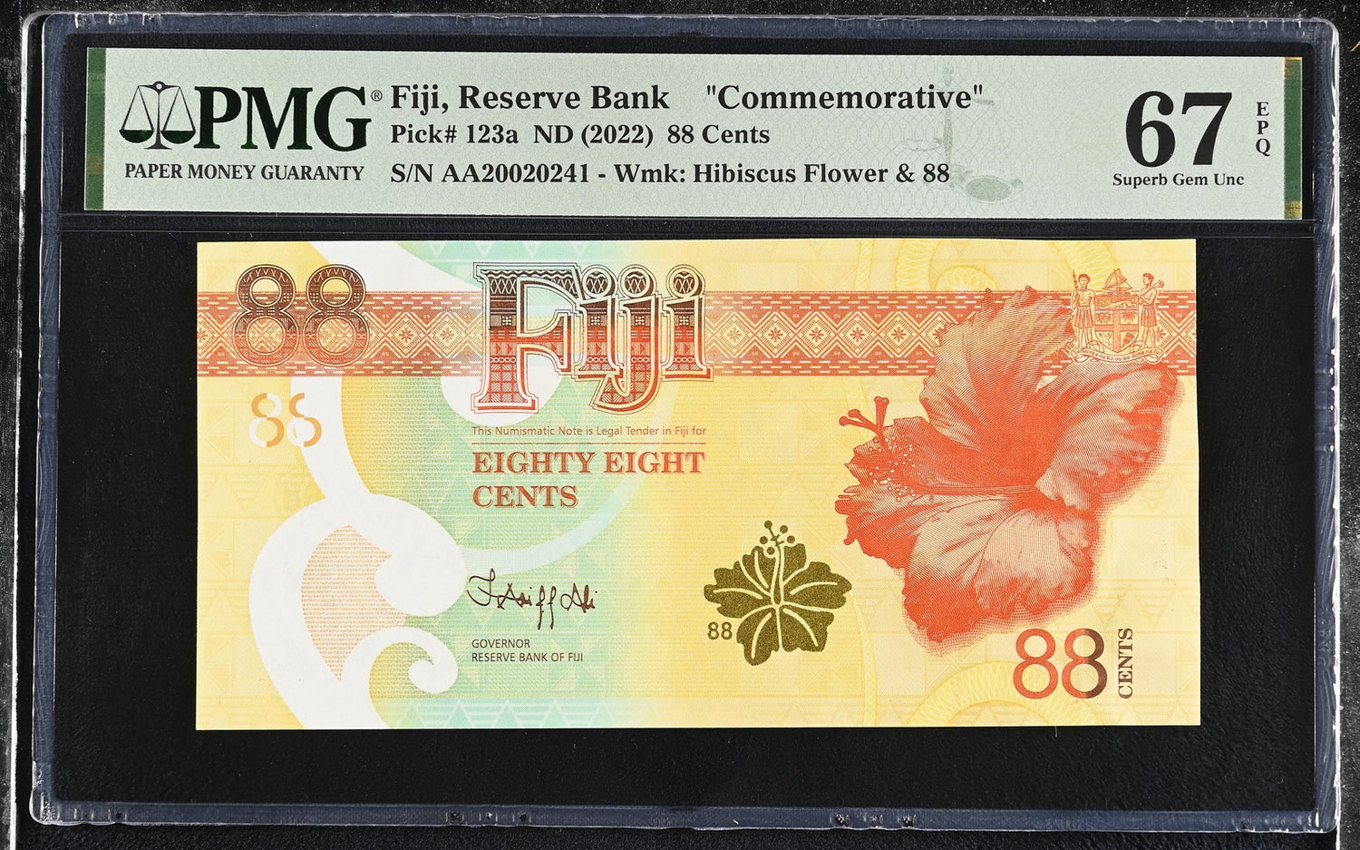 Fiji 88 Cents ND 2022 Comm. P 123 a AA Commemorative Superb Gem UNC PMG 67 EPQ