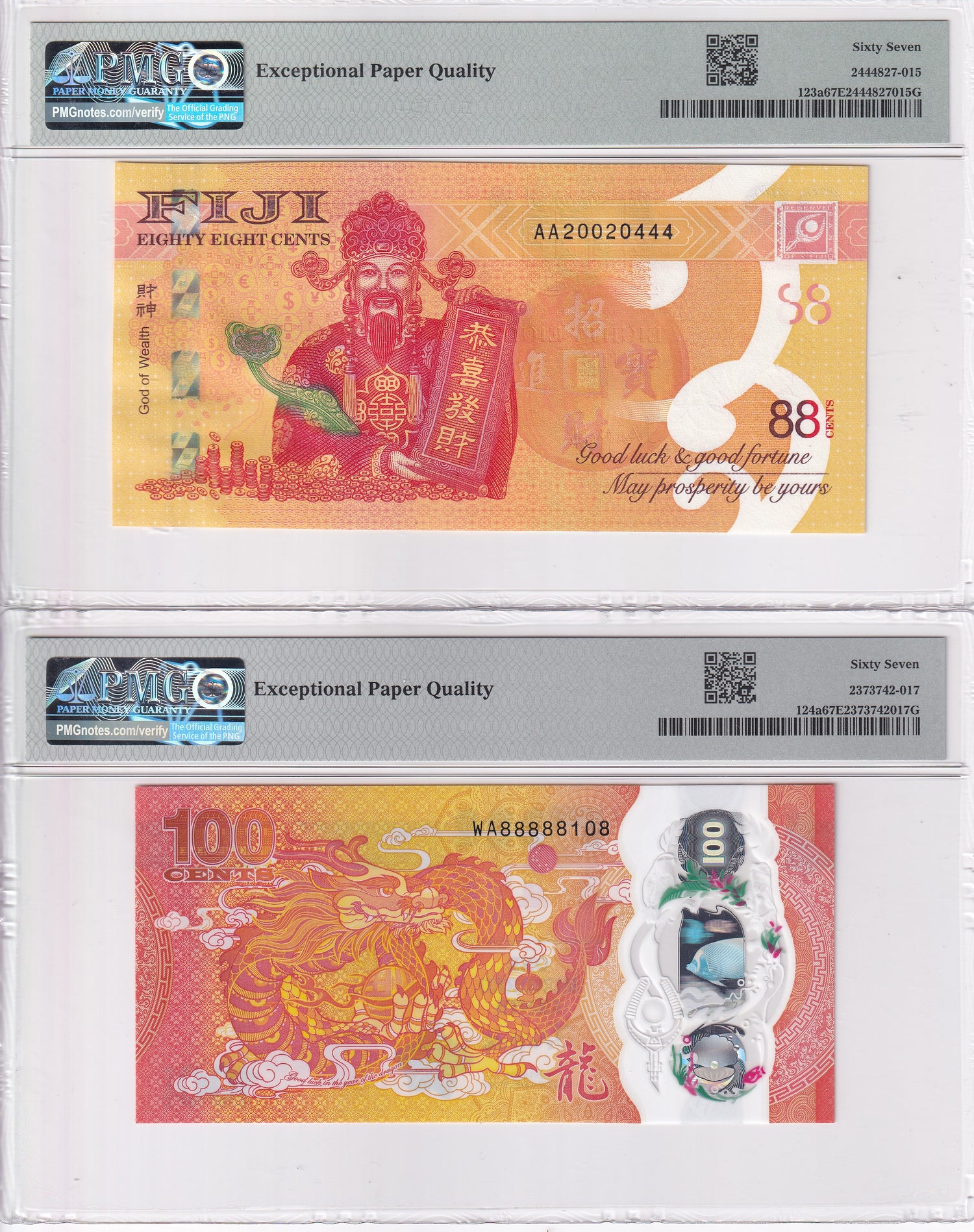 Fiji Set 2; 88 100 Cents 2022 2023 Comm. P 123 P 124 Superb Gem UNC PMG 68 EPQ
