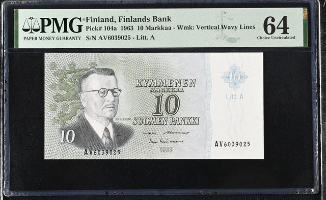 Finland 10 Markkaa 1963 P 104 a Choice UNC PMG 64
