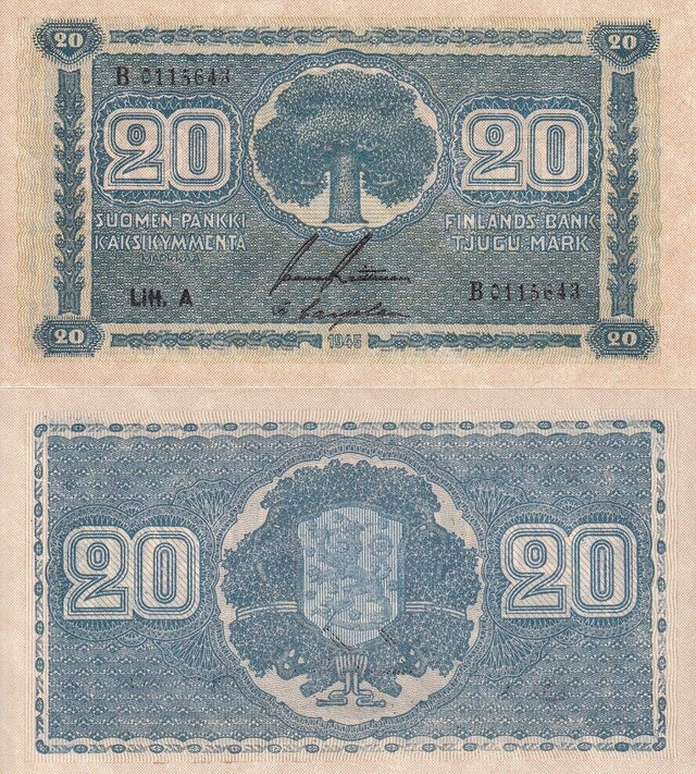 Finland 20 Mark 1945 P 78 Litt. A Series B P 78 UNC
