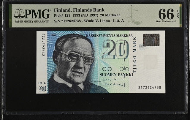 Finland 20 Markka 1993 ND 1997 P 123 Gem UNC PMG 66 EPQ