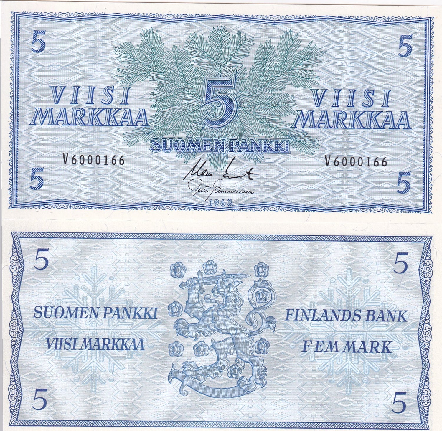 Finland 5 Markka 1963 P 99 UNC