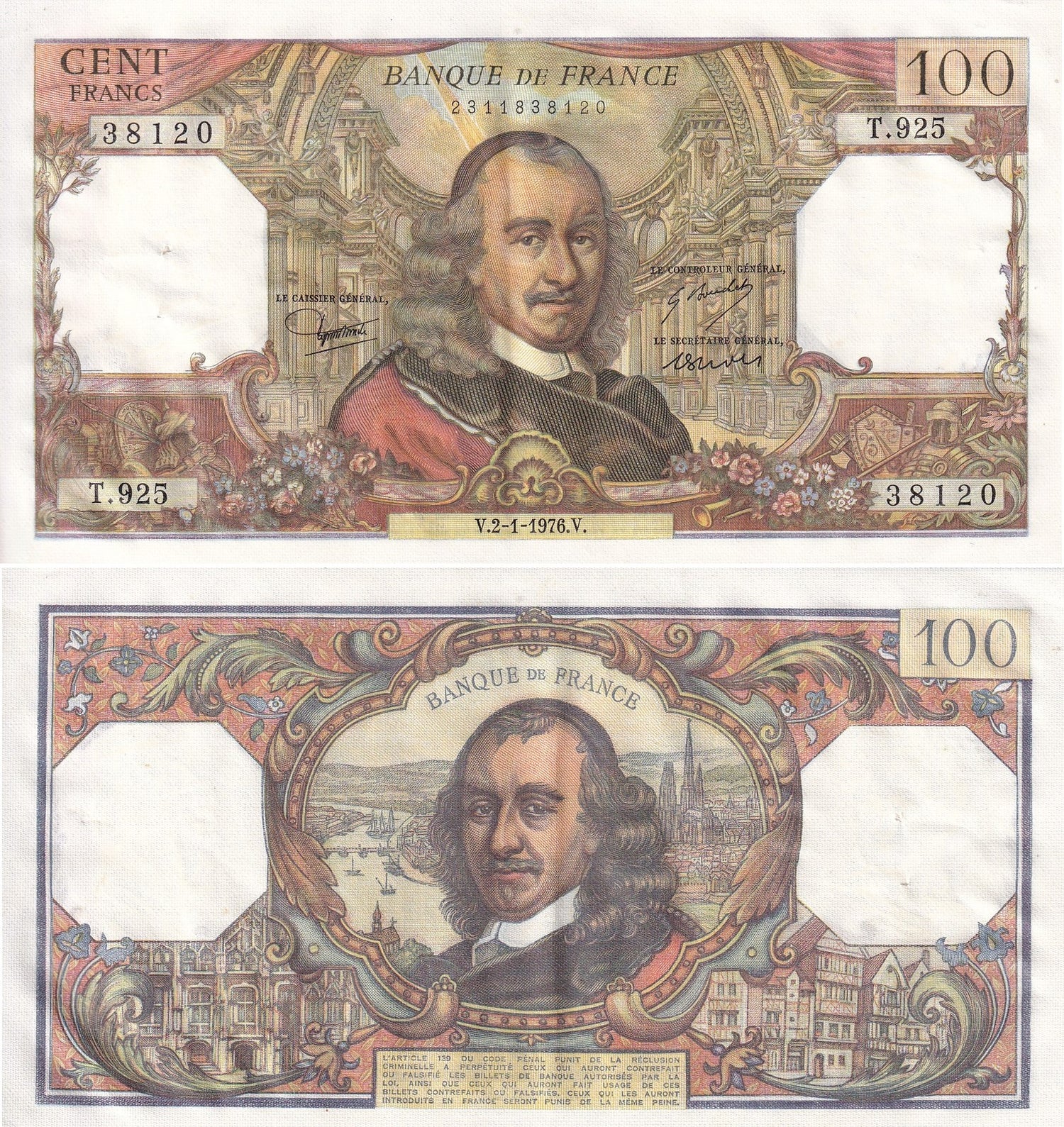 FRANCE 100 FRANCS 1976 P 147 XF W/H