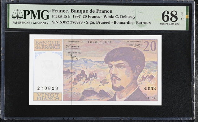 France 20 Francs 1997 P 151 i Superb Gem UNC PMG 68 EPQ TOP POP