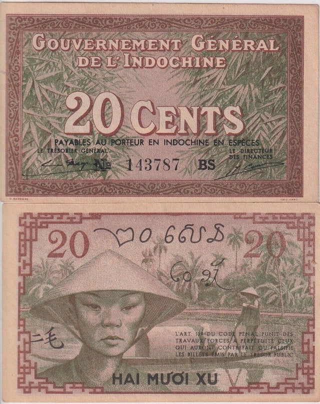French Indochina 20 Cents ND 1939 P 86 d AU-UNC