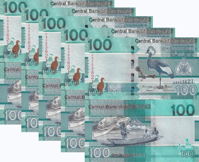 Gambia 100 Dalasis 2023/2024 P 41 NEW Sign UNC LOT 5 PCS