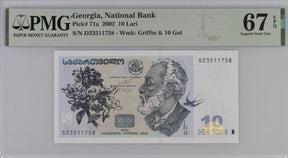 Georgia 10 Lari 2002 P 71 a Superb Gem UNC PMG 67 EPQ