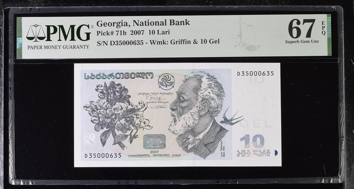 Georgia 10 Lari 2007 P 71 b Superb Gem UNC PMG 67 EPQ