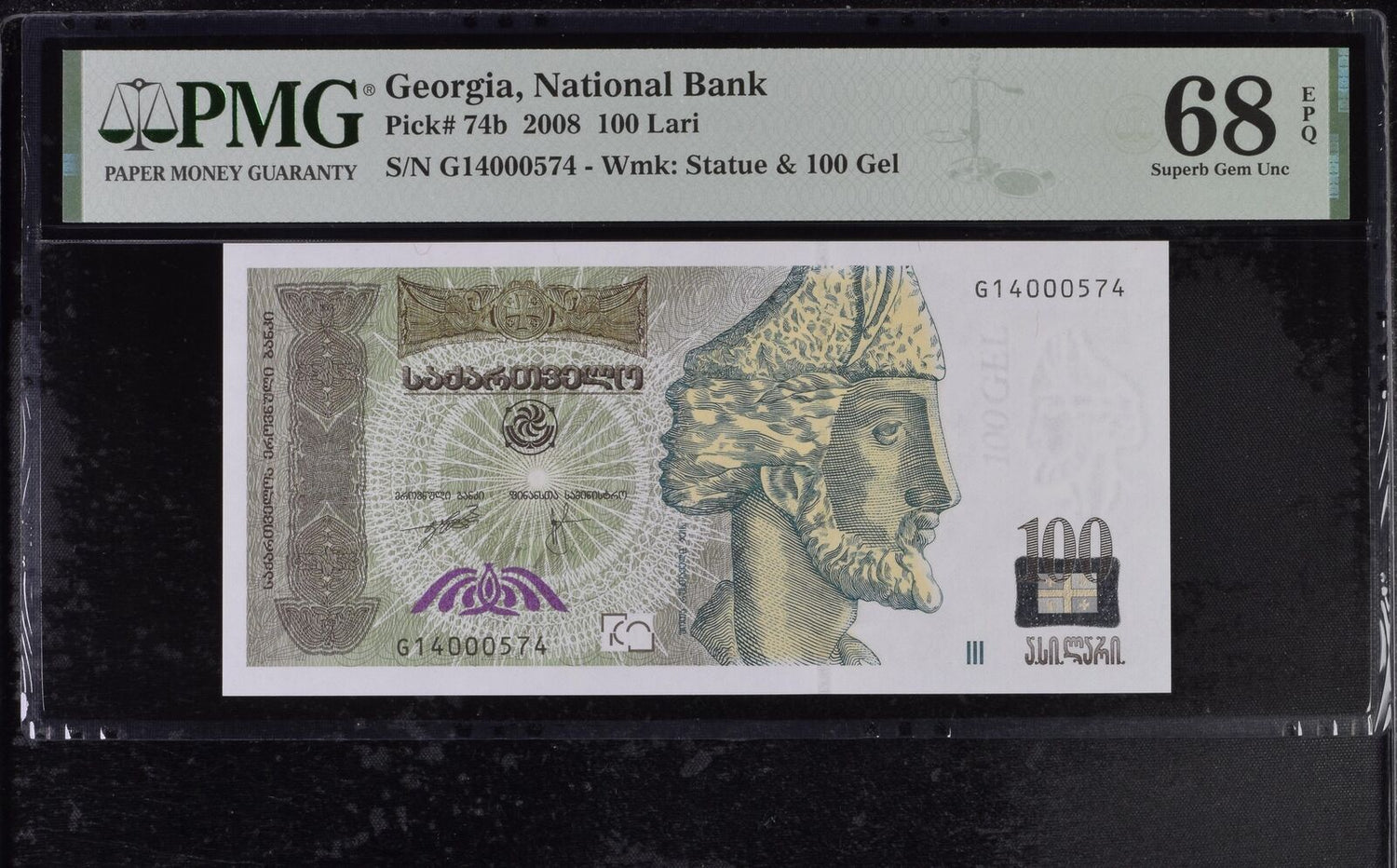 Georgia 100 Lari 2008 P 74 b Superb GEM UNC PMG 68 EPQ