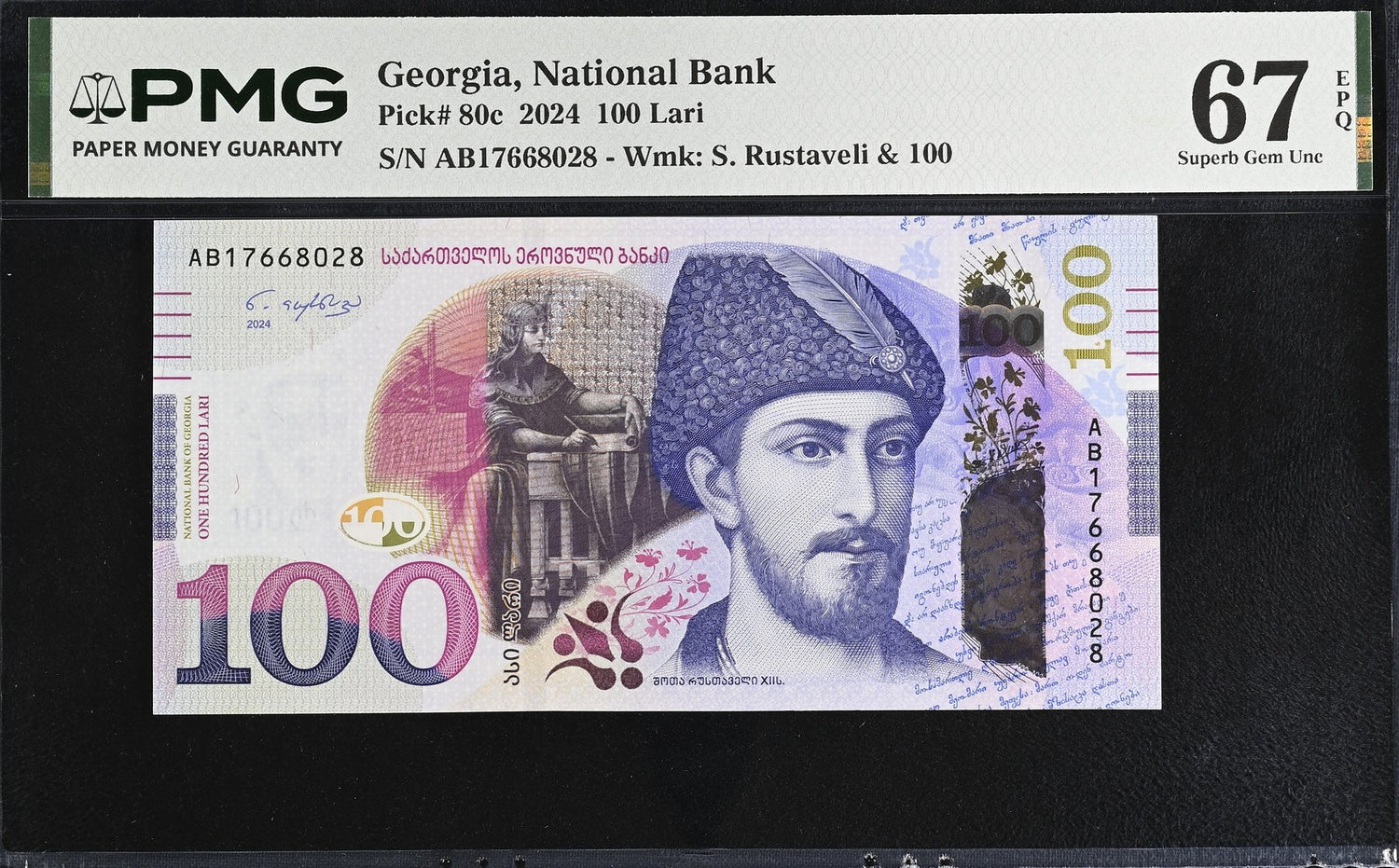 Georgia 100 Lari 2024 P 80 c Superb Gem UNC PMG 67 EPQ